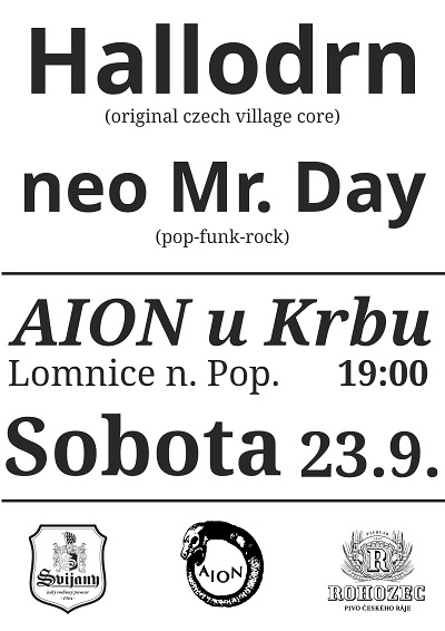 V lomnickém Aion klubu U krbu vystoupí v sobotu 23. září od 19 hodin kapely Hallodrn a Neo Mr. Day.