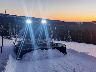 Sněhové podmínky v Harrachově jsou aktuálně dobré. Rolby denně vyjíždí upravovat běžecké tratě v okoli Harrachova, upravený je Terex, cesta podél Mumlavy na Voseckou boudu i hřebenové partie Krkonoš.