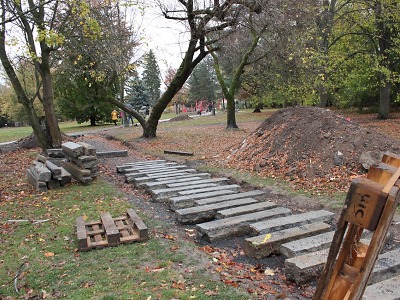 Jak pokračoval, některé cesty byly v parku rozšířeny a je zajišťován nový mobiliář. Během října však stavba nabrala zpoždění, a to kvůli zajišťování odsekové dlažby. „Potřebovali jsme materiál, který by byl nejvíce vizuálně podobný tomu z první etapy. Bohužel se lišil a nebyl odsouhlasen ani těžený materiál ze stejného lomu," vysvětil důvody zdržení Miloslav Chrumko. V současné době je situace řešena dovozem žulových odseků z polské lokality. Z výše uvedených důvodů došlo k prodloužení termínu ukončení dláždění do 9. 12. 2018.
