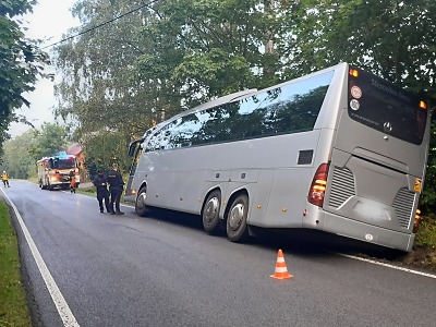 Hasiči v obci Roztoky u Jilemnice (nikoli jak bylo chybně uváděno v první zprávě Roztoky u Semil) zasahovali v sobotu dopoledne u dopravní nehody zájezdového autobusu, který sjel do příkopu. Museli odkopat zeminu, aby dokázali vůbec otevřít dveře autobusu.