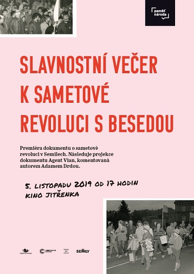 V kině Jitřenka v Semilech se v úterý 5. listopadu od 17 hodin uskuteční komponovaný slavnostní večer k výročí sametové revoluce. Proběhne zde mimo jiné premiéra dokumentárního filmu o sametové revoluci v Semilech, jehož základem jsou rozhovory s přímými účastníky.
