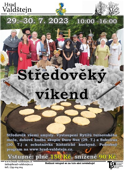 První polovina prázdnin se blíží ke konci a hrad Valdštejn ožije Středověkým víkendem, který ve dnech 29. a 30. července 2023 nabídne pestrý program. Tradiční akce nabídne vystoupení šermířů, dobovou hudbu a malou ochutnávku historické kuchyně.