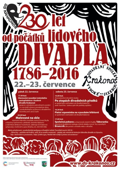 Slavnostní punc oslavám vtiskne také derniéra úspěšného představení místního souboru Krakonoš Malované na skle. K vysockém nastudování hry Ernesta Brylla a Kateřiny Gartnerové v překladu Jaromíra Nohavici a v režii Marie Brtkové Trunečkové v roce 2014 vysokoškolský pedagog a divadelní režisér František Laurin řekl: „Téma hry - potřeba mít hrdinu, věřit, že se zrodil a nezemřel - jakoby nás vracelo ke kořenům lidového divadla na Vysocku, kdy v těch hrách a postavách, i když jiného typu, hledali lidé naději a jistotu své existence."