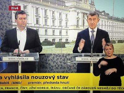 Vláda vyhlásila od čtvrtečních 14 hodin v České republice nouzový stav kvůli koronaviru. Zakázala také konání akcí s počtem lidí vyšším než 30 a zakázala vstup do restaurací od 20 hodin večer do 6 hodin ráno. Omezila také vstup do Česka pro cizince a zakázala českým občanům vstupovat do rizikových zemí. Opatření mají platit po dobu 30 dnů.