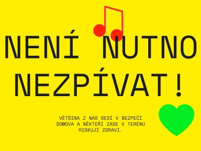 V Itálii si zpívají sousedé z balkónů, ve Španělsku policisté na ulicích, někde se tleská. Říká se, že co Čech, to muzikant. V domácnostech, obchodech, fungujících podnicích nebo na ulicích se po středečním obědě na chvíli zastavme, vezměme do ruky hudební nástroj nebo jen zpívejme píseň Není nutno, kterou zná u nás téměř každý.