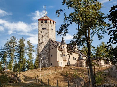 Tramvaj číslo 2 nebo 3 z centra Liberce vyveze na konečnou zastávku v Lidových sadech. Zde hned na začátku čeká stoupání po žluté na Libereckou výšinu, která připomíná středověký hrad. Nechybějí tu most, věž, nádvoří a studna s rumpálem. Kdo má chuť, může vyšplhat na 25 metrů vysokou rozhlednu a pak se občerstvit v tamní restauraci.