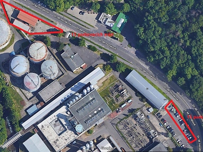 15 parkovacích míst za závorou přímo před administrativní budovou Teplárny a.s., v ulici Dr. M. Horákové