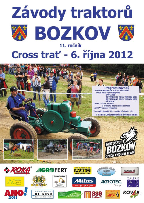 Především dobrá nálada a pohoda provázely v sobotu 6. října v Bozkově již 11. ročník sjezdu traktorů. Kromě samotného závodu ve čtyřech kategoriích byly součástí i doprovodné soutěže jako jízda s trakařem, házení bramborou, koulení pneumatik a nebo hod vidlemi.